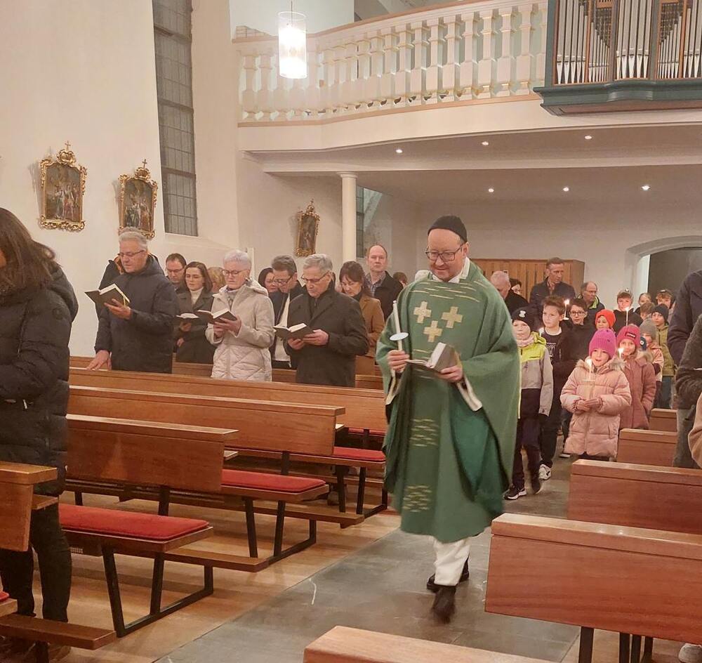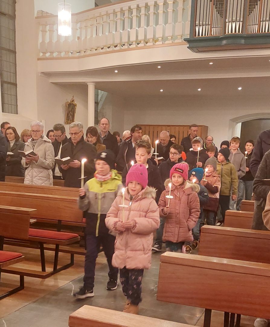 Die Kinder und Jugendlichen zogen gemeinsam mit Pfarrer Hubert in die Kirche ein, wo die mitgebrachten Kerzen gesegnet wurden. Traditionell wurde nach dem Gottesdienst der Blasiussegen gespendet.