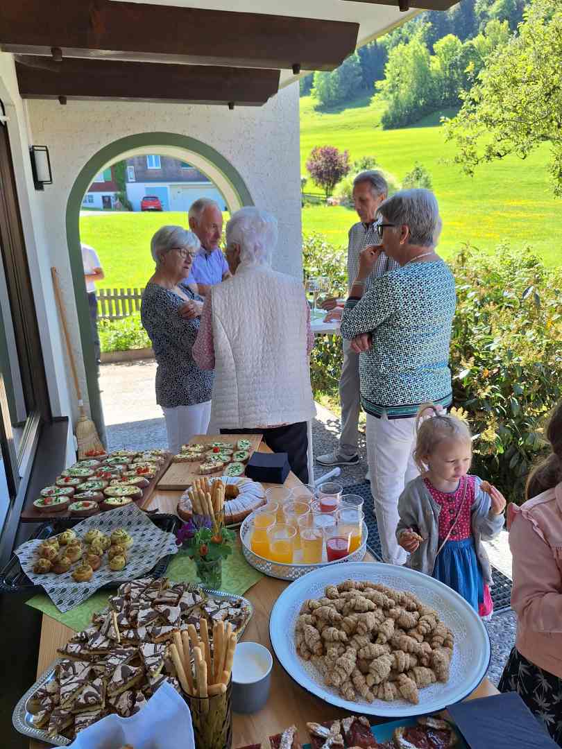 Im Anschluss an die Hl. Messe am Pfingstmontag war die Pfarrgemeinde eingeladen, den renovierten Pfarrhof zu besichtigen. Dieser Möglichkeit sind viele Interessierte gefolgt. Bei Getränken und Snacks konnten im Pfarrgarten gute Gespräche geführt werden.
