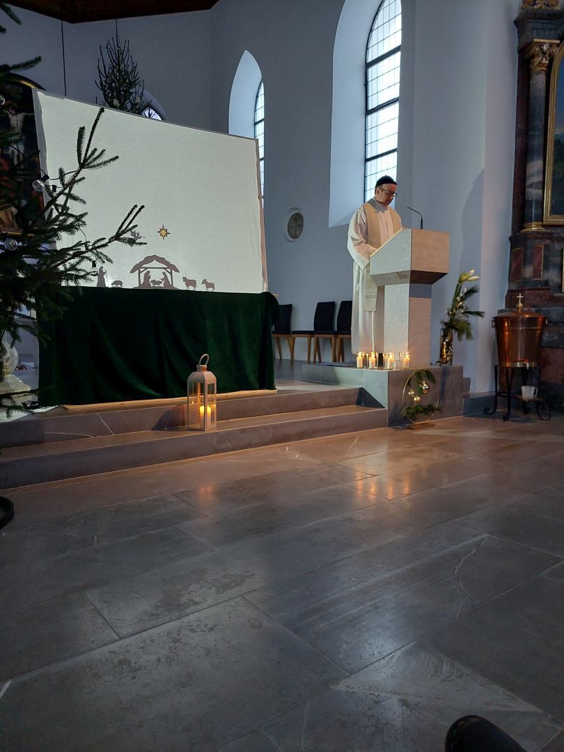 Gemeinsam beendeten wir unsere Kindermette vor den hell erstrahlten Christbäumen, mit dem bekanntesten aller Weihnachtslieder: „Stille Nacht“.