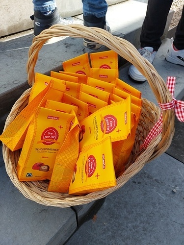 Zu diesem Zweck verkauften unsere Ministranten am 19. Oktober nach dem Gottesdienst Schokopralinen. Sie erzielten inklusive Trinkgeld und Spenden einen Erlös von € 466,-.
